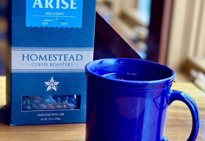 Arise is a sweet and robust whole bean coffee available in 12 oz box by Homestead Coffee Roasters in Upper Black Eddy, PA